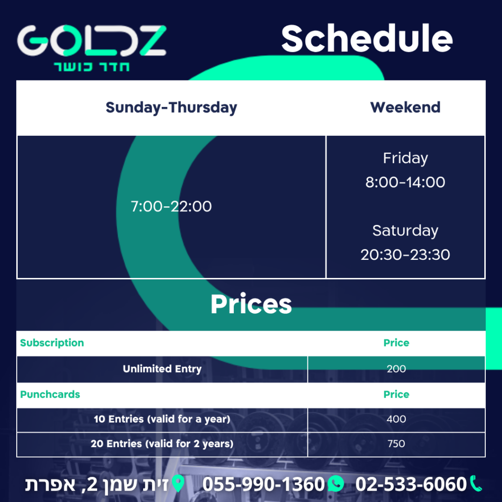 Goldz is a unique fitness and training complex in Gush Etzion!